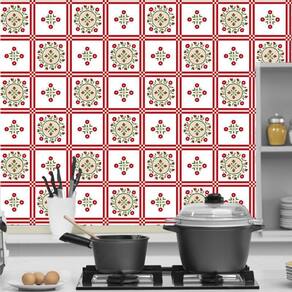 Papel de parede azulejo flores vermelhas cozinha e banheiro