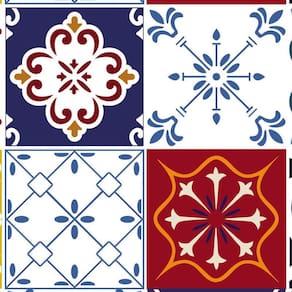 Papel de parede azulejo vermelho e azul cozinha lavatório