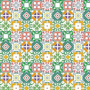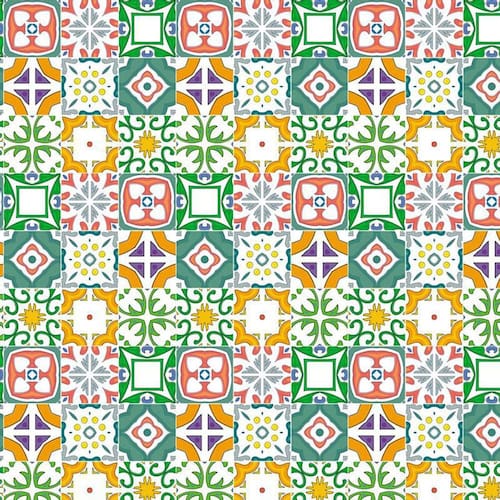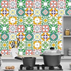 Papel de parede azulejo vermelho verde laranja cozinha pia