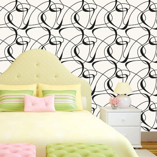 Papel De Parede Branco Com Linhas E Ondas Preta Geométrica