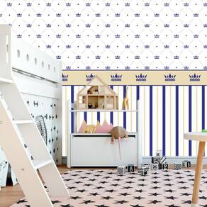 Papel De Parede Branco Com Listra E Coroa Azul Infantil Bebê