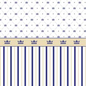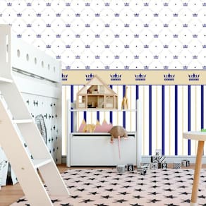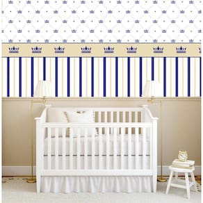 Papel De Parede Branco Com Listra E Coroa Azul Infantil Bebê