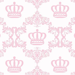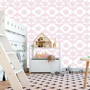 Papel De Parede Branco Coroas Rosa Claro Quarto Bebê Adesivo
