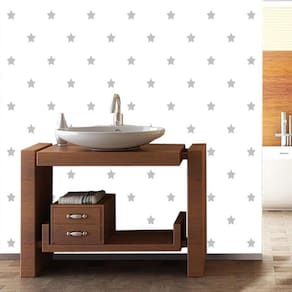 Papel De Parede Branco E Estrelas Cinza Autocolante Sala