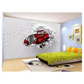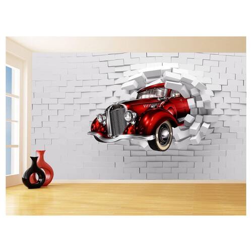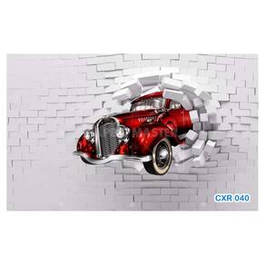 Papel De Parede Carro Antigo Saindo Da Parede 3D 3,5M Cxr40
