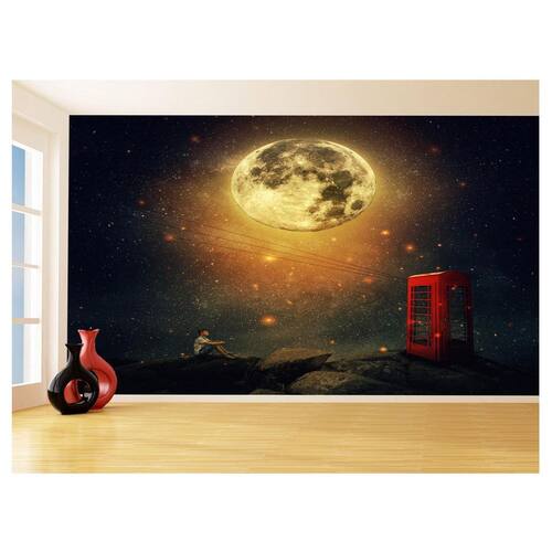 Papel De Parede Céu Lua Luz Cabine Telefônica 3,5M Nsk120