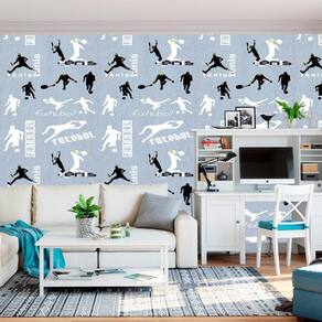 Papel De Parede Cinza Autocolante Futebol Tênis Decorativo