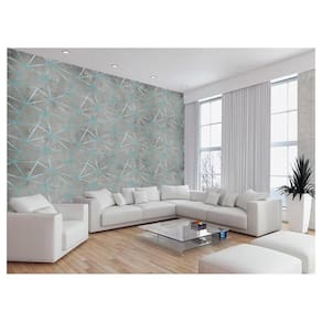 Papel De Parede Concreto Linhas Azul Turquesa 3,5M Kkt262