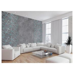Papel De Parede Concreto Linhas Azul Turquesa 3,5M Kkt277