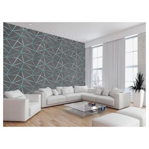 Papel De Parede Concreto Linhas Azul Turquesa 3,5M Kkt278