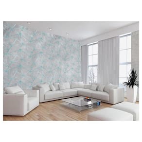 Papel De Parede Concreto Linhas Azul Turquesa 3,5M Kkt282