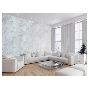 Papel De Parede Concreto Linhas Azul Turquesa 3,5M Kkt295