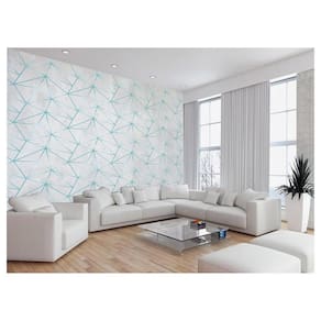 Papel De Parede Concreto Linhas Azul Turquesa 3,5M Kkt306