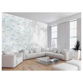 Papel De Parede Concreto Linhas Azul Turquesa 3,5M Kkt311
