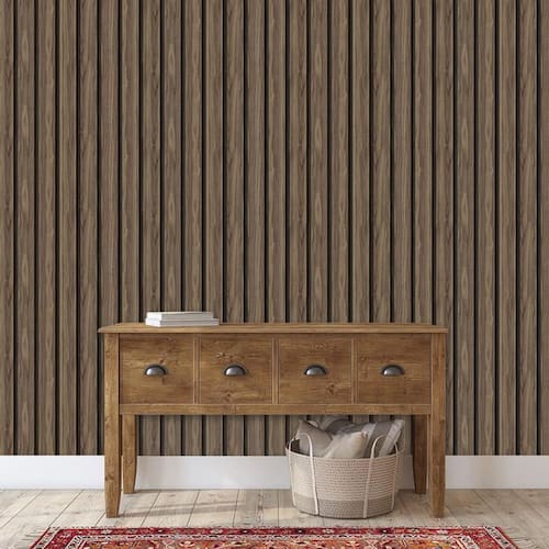 Papel de Parede Efeito Ripas de Cerejeira Adesivo Escura