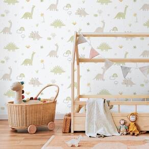 Papel De Parede Enzo Dino Verde E Rosa 283-3
