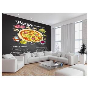 Papel De Parede Estilo Lousa Pizza Ingrediente 3,5M Lcb02