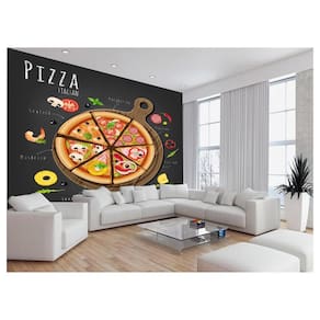 Papel De Parede Estilo Lousa Pizza Ingrediente 3,5M Lcb05