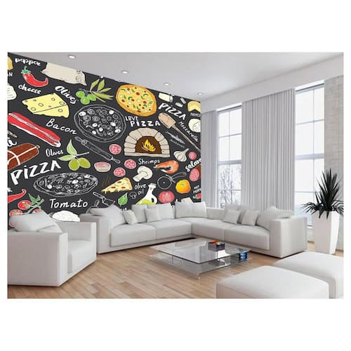 A impressão é feita em vinil adesivo. É um material lavável, impermeável, autocolante e antimofo. O produto cobre uma área de 3,50m, contando com 1,75 metro de altura por 2 metros de largura.