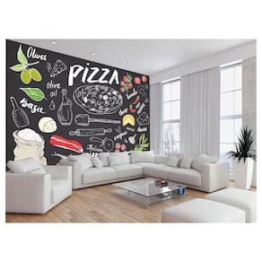 Papel De Parede Estilo Lousa Pizza Ingrediente 3,5M Lcb11