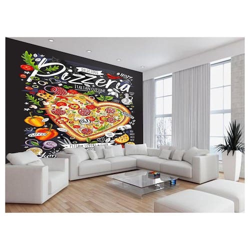 A impressão é feita em vinil adesivo. É um material lavável, impermeável, autocolante e antimofo. O produto cobre uma área de 3,50m, contando com 1,75 metro de altura por 2 metros de largura.