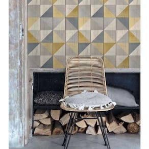 Papel De Parede Exposure Ep3104 Painel De Madeira Com Triângulos - Rolo 10m X 0,53m