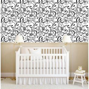 Papel De Parede Floral Flores Preta Sem Pintura Adesivo Sala