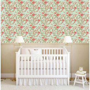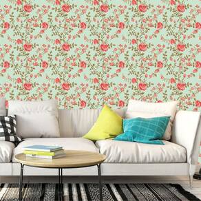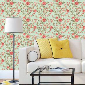 Papel De Parede Floral Flores Vermelhas E Verde Adesivo Sala