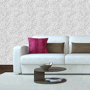 Papel De Parede Floral Galhos Com Fundo Cinza Adesivo Sala