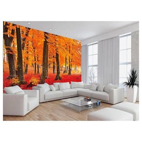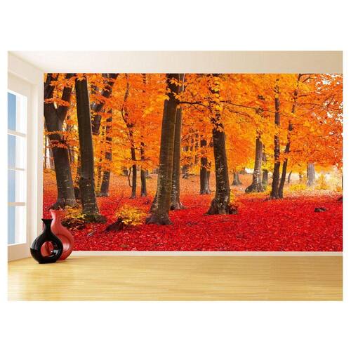 Papel De Parede Floresta Outono Laranja Folha 3,5M Xna234