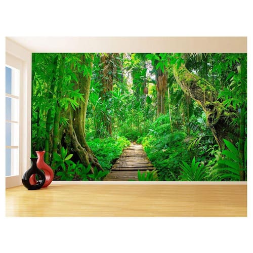A impressão é feita em vinil adesivo. É um material lavável, impermeável, autocolante e antimofo. O produto cobre uma área de 3,50m, contando com 1,75 metro de altura por 2 metros de largura.