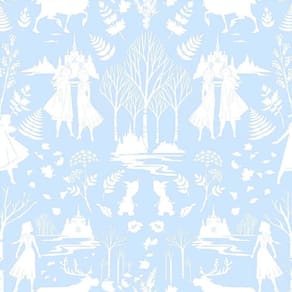 O quarto das meninas vai ganhar um toque de magia e encanto com o fantástico papel de parede princesas Frozen da coleção Disney York III.