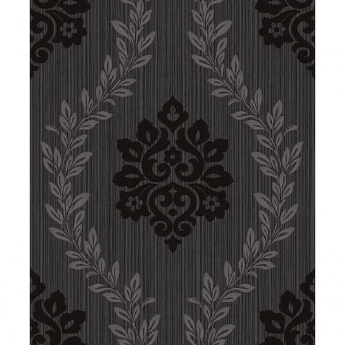 Papel De Parede Fusion Damask Grafite Preto - Rolo 10m X 0,53m