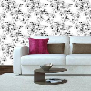 Papel De Parede Galhos Com Floral Flores Pretas Adesivo Sala
