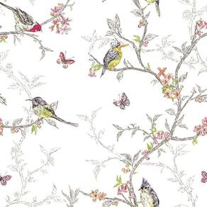 Papel De Parede Galhos E Passarinhos Decorativo Adesivo
