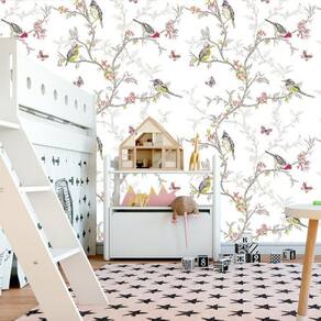 Papel De Parede Galhos E Passarinhos Decorativo Adesivo