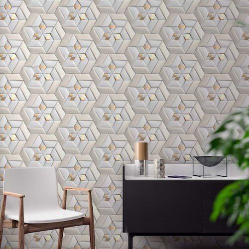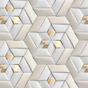 Papel De Parede Geométrico Dourado Efeito Couro Acinzentado 3D - Tamanho: 3,50M
