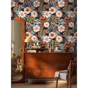 Papel de parede HAOKHOME Boho Peel and Stick Papel de parede floral removível para quarto Papel de contato azul/rosa/laranja 17,3 polegadas x 32,8 pés