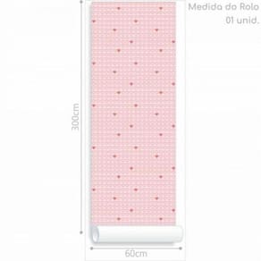 Papel De Parede Infantil Corações Rosa PRODUTO: Papel de Parede Infantil Corações Rosa Peso Produto Com Embalagem (Kg): 0,49 QUANTIDADE DE CAIXAS DE EMBALAGEM: 1 Unidade de venda: Rolo Rendimento: 1,8 m Montagem: Necessita Montagem ALTURA DO PRODUTO (CM): 300 LARGURA PRODUTO COM EMBALAGEM (CM): 11 PESO DO PRODUTO (KG): 0,19 ESTADO DE ORIGEM: SP COMPRIMENTO PRODUTO COM EMBALAGEM (CM): 61 MATERIAL PRINCIPAL: Papel PRODUTO PRECISA DE MONTAGEM?: Sim, a montagem é simples mas sugerimos a contratação do nosso serviço de montagem (para os CEPs em que o serviço está disponível) ou de algum profissional experiente de sua preferência MODELO: Papel de Parede Infantil Corações Rosa MARCA: Casa H MATERIAL PARA FILTRO: Papel INSTRUÇÕES/CUIDADOS: Limpar com pano macio e seco, não utilizar produtos abrasivos. DESCRIÇÃO DO TAMANHO: Comprimento: 300 cm Largura: 60 cm Espessura 0,01 cm CORES DO PRODUTO (FILTRO DE CORES): Rosa CONTEÚDO DA EMBALAGEM: 1 Papel De Parede ALTURA DO PRODUTO COM EMBALAGEM (CM): 5 LARGURA DO PRODUTO (CM): 60 COMPRIMENTO DO PRODUTO (CM): 1 COR PREDOMINANTE: Rosa