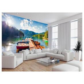 Papel De Parede Lago Canoas Barcos Ponte Água 3,5M Nlk156