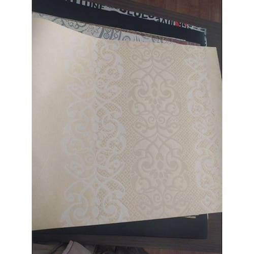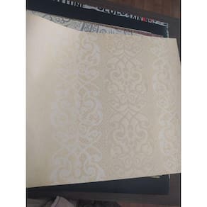 Papel de parede Ga60202. Amarelo com arabescos branco off em forma de listras. Rolo com 5m²(53 cm de largura e 10 metros de comprimento)
