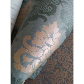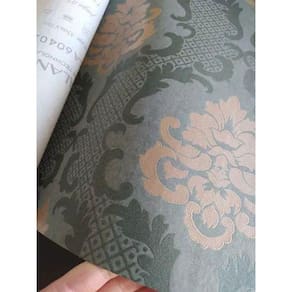 Papel de Parede Lavavel Mod.Ga60304. Verde com arabesco dourado/bronze. Rolo com 5m2(53 cm de largura e 10 metros de comprimento).
