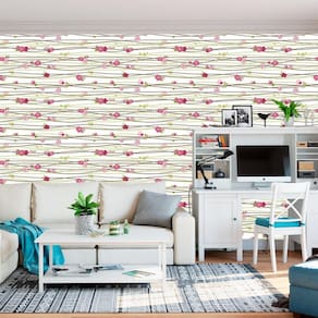 Papel De Parede Linhas Flores Rosas Adesivo Sala Quarto
