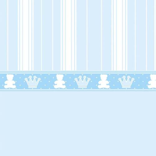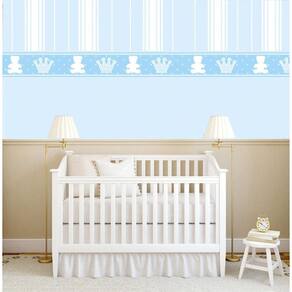 Papel De Parede Listrado Azul Com Coroa E Urso Adesivo Bebê