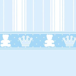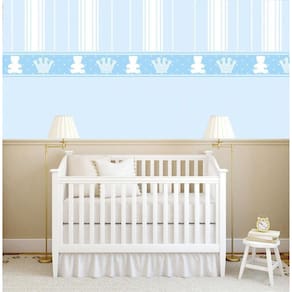 Papel De Parede Listrado Azul Com Coroa E Urso Adesivo Bebê