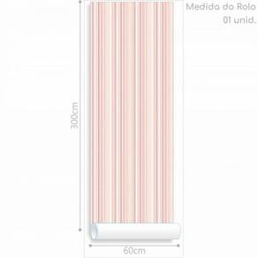 PRODUTO: Papel de Parede Infantil Listrados Rosa PastelQUANTIDADE DE CAIXAS DE EMBALAGEM: 1Unidade de venda: RoloRendimento: 1,8 m²Montagem: Necessita MontagemPRODUTO PRECISA DE MONTAGEM?: Sim, a montagem é simples mas sugerimos a contratação do nosso serviço de montagem (para os CEPs em que o serviço está disponível) ou de algum profissional experiente de sua preferênciaCOMPRIMENTO DO PRODUTO (CM): 1ALTURA DO PRODUTO (CM): 300PESO DO PRODUTO (KG): 0,19COR PREDOMINANTE: LilásDESCRIÇÃO DO TAMANHO: Comprimento: 300 cm Largura: 60 cm Espessura 0,01 cmMATERIAL PARA FILTRO: PapelCORES DO PRODUTO (FILTRO DE CORES): LilásINSTRUÇÕES/CUIDADOS: Limpar com pano macio e seco, não utilizar produtos abrasivos.MODELO: Papel de Parede Infantil Listrados Rosa PastelLARGURA DO PRODUTO (CM): 60PESO PRODUTO COM EMBALAGEM (KG): 0,49LARGURA PRODUTO COM EMBALAGEM (CM): 11MARCA: Casa HESTADO DE ORIGEM: SPMATERIAL PRINCIPAL: PapelCOMPRIMENTO PRODUTO COM EMBALAGEM (CM): 61ALTURA DO PRODUTO COM EMBALAGEM (CM): 5CONTEÚDO DA EMBALAGEM: 1 Papel De Parede Marca: Não Informado