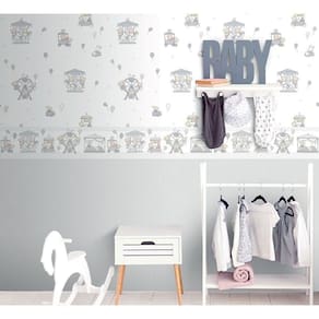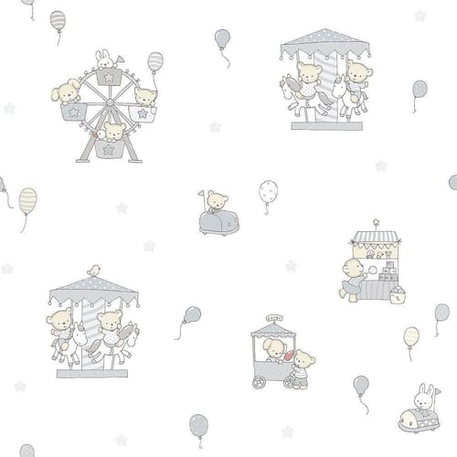 Papel De Parede Lullaby Carrossel Cinza 2203 Rolo: 10m X 0,53m