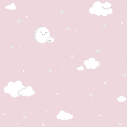 Papel De Parede Lullaby Lua Cheia Rosa 2212 Rolo: 10m X 0,53m