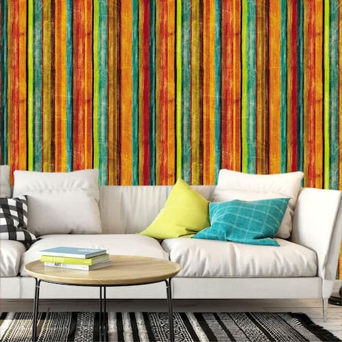 Papel de parede madeira colorida autocolante lavável sala