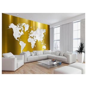 Papel De Parede Mapa Mundi Aço Escovado Branco 3,5M Nmu65